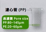 產品材質:2.0ml 採樣管及研磨棒皆為PP 聚丙烯、濾心膜:PP 聚丙烯 (孔徑為